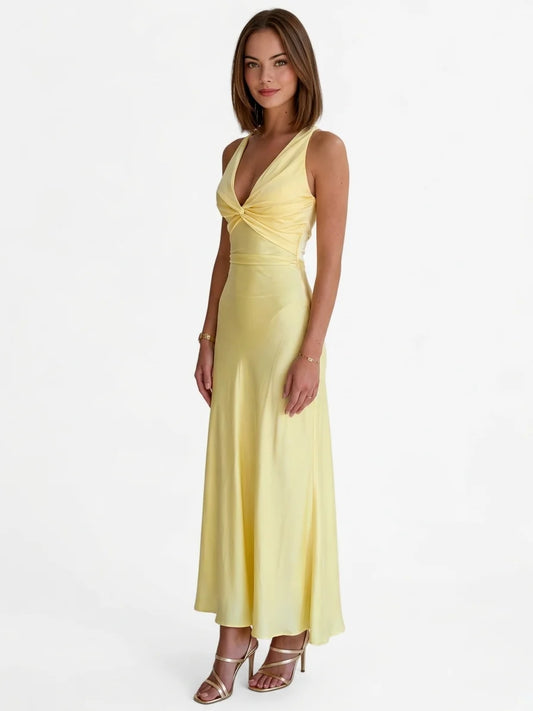 Sukienka Maxi Satynowa Halter z Węzłem – Elegancka Sukienka Wieczorowa