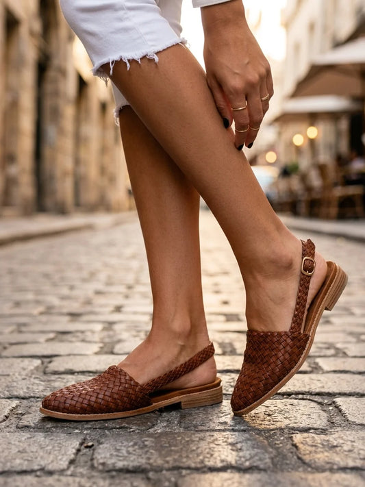 Mokasyny Damskie Skórzane z Klamrą – Plecione Mokasyny Slingback